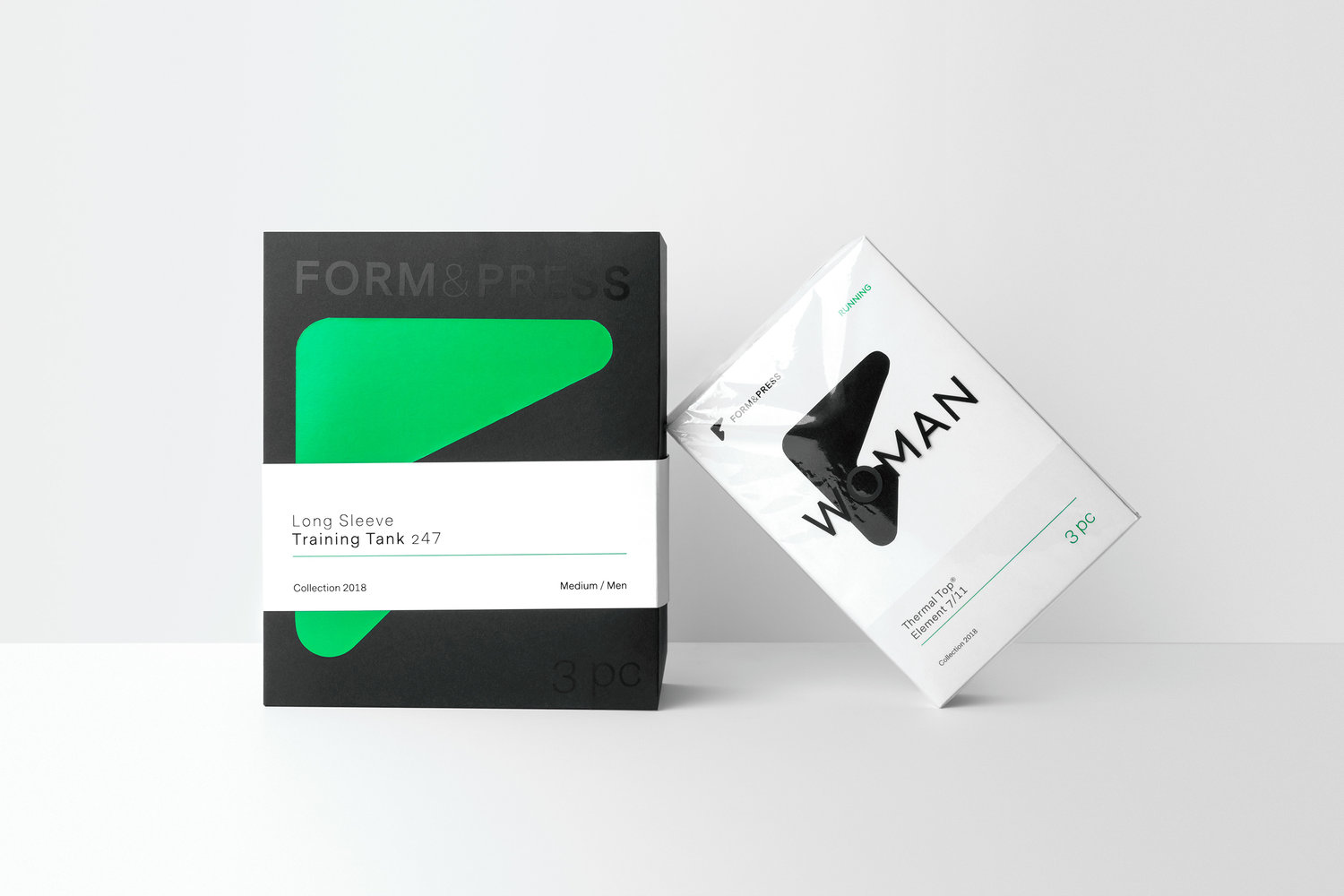 Sportswear brand Form&Press design visual language and clothing brand design. The philosophy of Form&Press is that through discipline and hard work, people can improve their quality of life through physical, health and spiritual transformation. Our graphic solution to represent these values is to create a trademark that combines the acronym F&P, the movement, transformation, and evolution within the brand clothing VI design.
