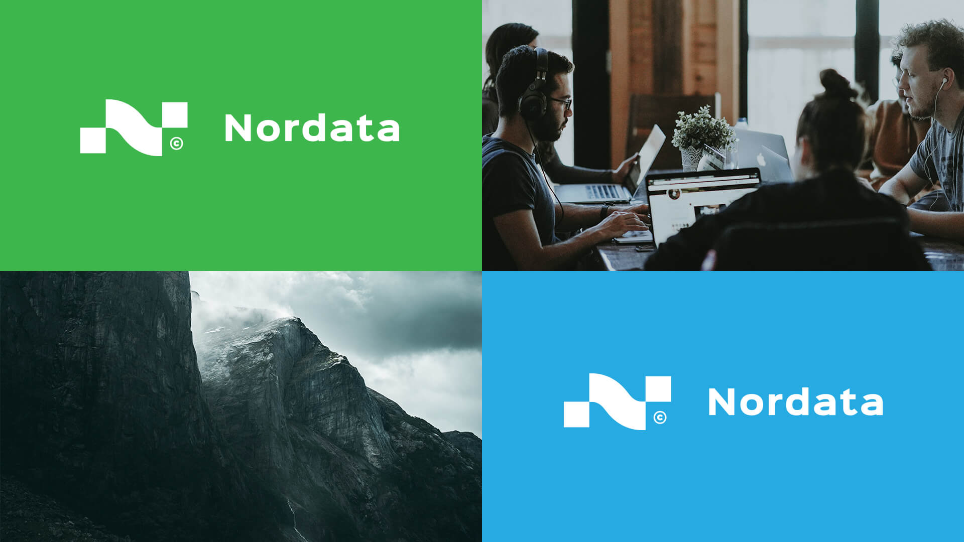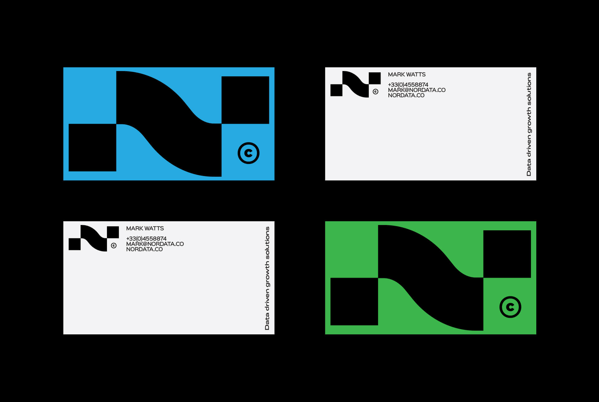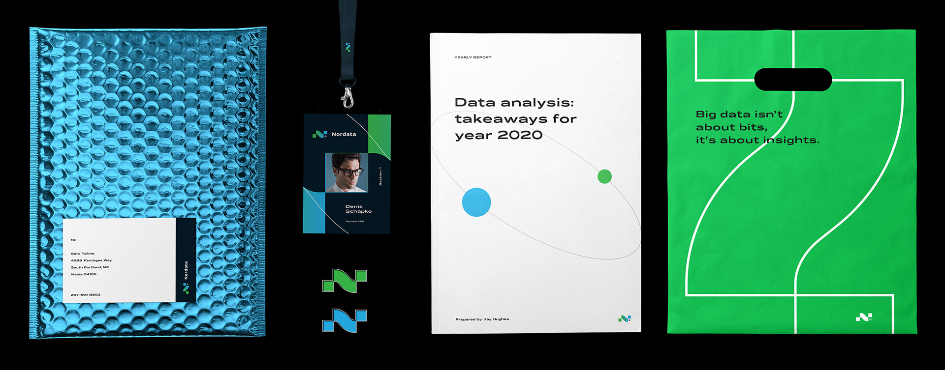 數據驅動的營銷公司徽標和品牌標識。品牌名稱結合了兩個詞:“北”和“數據”。最終徽標表示字母“ N”,該字母由具有交互連接的兩個數據簇組成。由于公司在北部地區開展業務,因此視覺識別的配色方案反映了極光或換句話說,就是北極光。